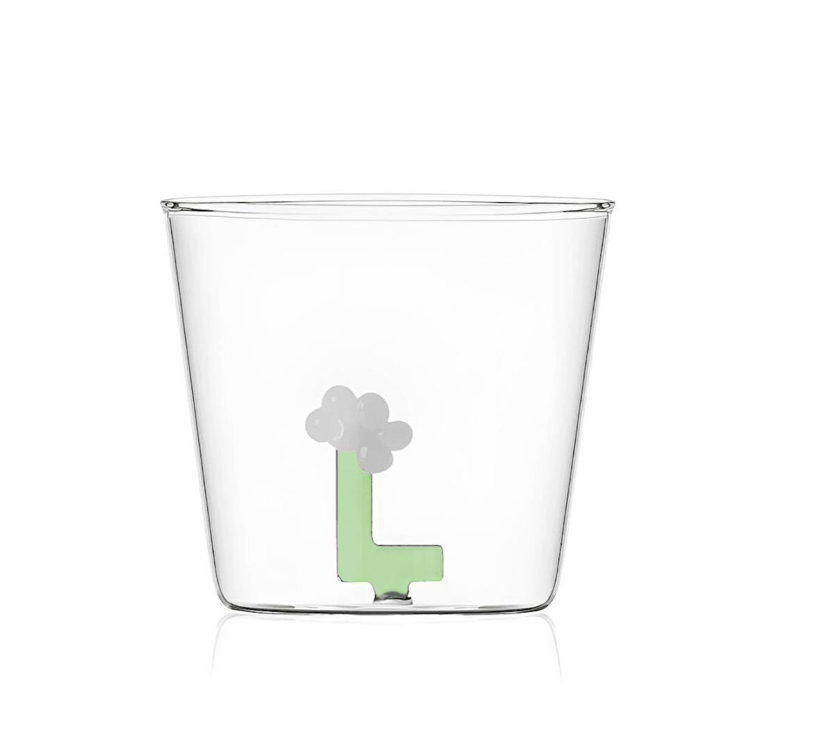 Bloom Alphabet koleksiyonundan yeşil renkli harf figürlü cam su bardağı