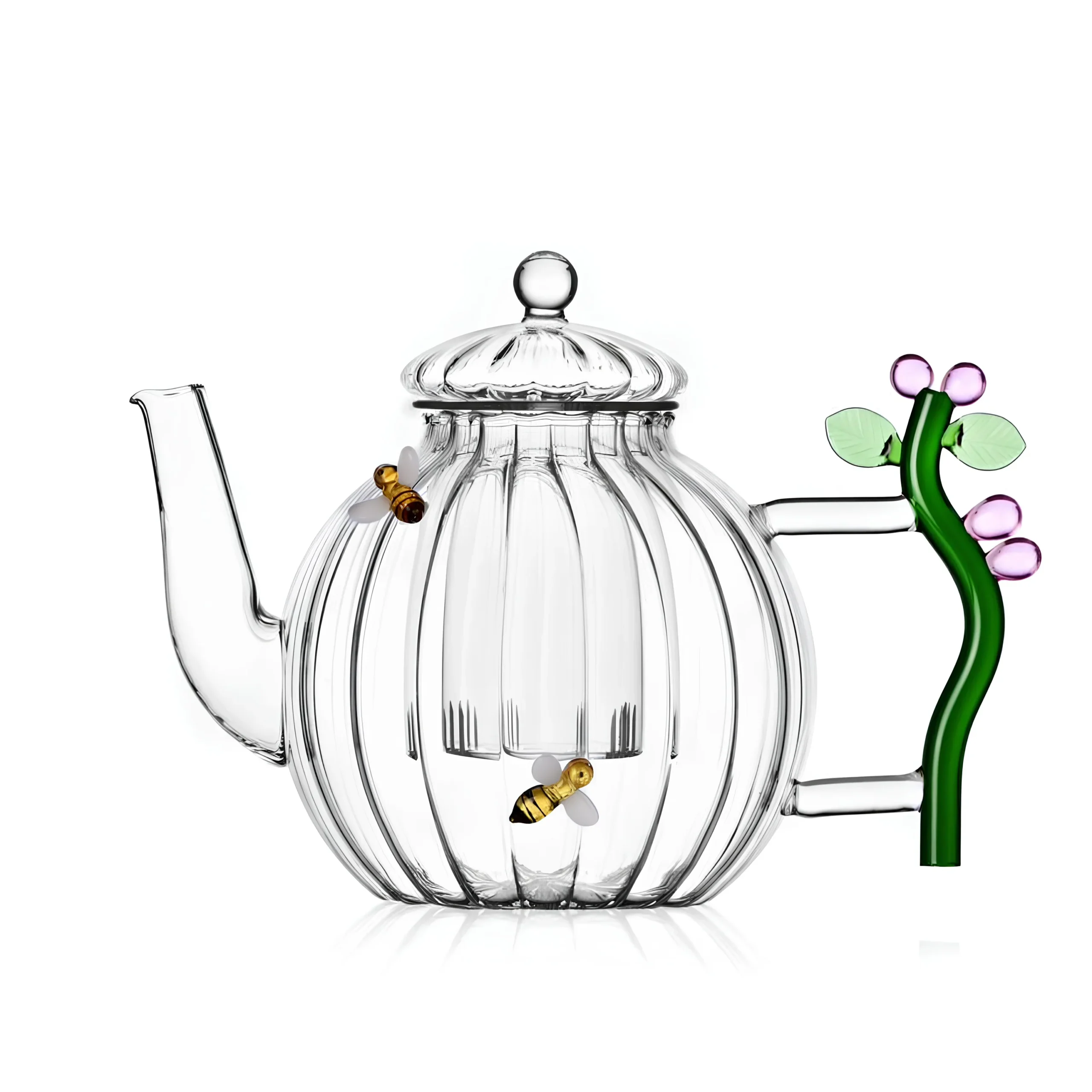 Çiçek ve Arı Figürlü Cam Teapot